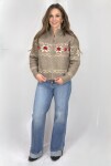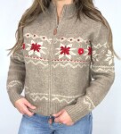 Stay warm and stylish in this cozy tan and white sweater, designed with a thicker knit for extra comfort on cooler days. The bold red floral pattern adds a pop of color and charm, while the front zipper gives it a modern, functional touch. Whether you're layering it over your favorite jeans or pair it with leggings for a relaxed look, this sweater brings the perfect mix of comfort warmth, and stand out style.